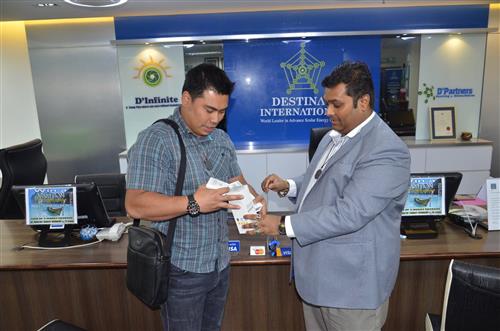 Destina 1 International welcome VIP Advance Scalar Energy Pendant wearer Thinagaran Vijayan who is Malaysia National foo. . .
