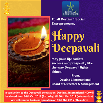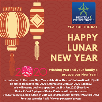 In conjuction to the Lunar New Year celebration Destina1 International HQ will be closed from 25th Jan 2020 (Saturday) . . .