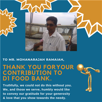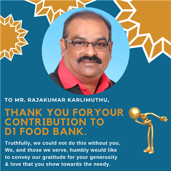 Dear Mr Rajakumar Karlimuthu, On behalf of D1 Food Bank, We would like to thank you for your generous contribution. In . . .